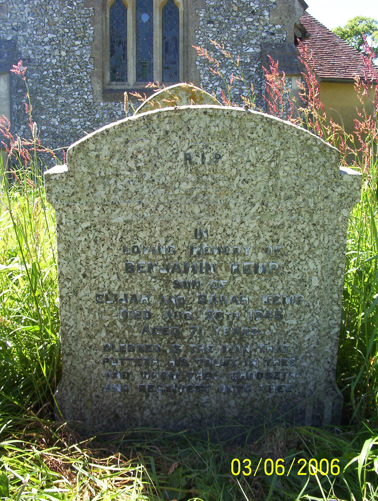 In loving memory of Benjamin Kemp son of Elijah and Sarah Kemp. |